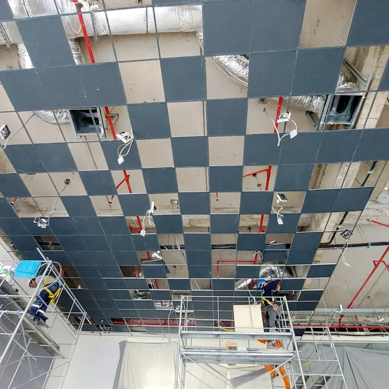 - Obras civiles y arquitectura (desmontajes, demolición, contrapiso, tabiquería de drywall, suministro de falso cielo raso, pintura, enchapes, puertas, mamparas de vidrio. ).